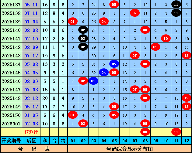 后区第一位分析:上期该位开出号码02,该位2号码遗漏1期再出,第一位最近30期012路比为5:11:14,最近20期012路比为3:8:9,最近10期012路比为0:4:6,本期第一位蔼然2路号,看好号码08。 后区第二位分析:上期该位开出号码08,该位2号码连结出现2期,第二位最近30期012路比为8:8:14,最近20期012路比为5:5:10,最近10期012路比为5:0:5,本期第二位展望出现2路号,看好号码11。